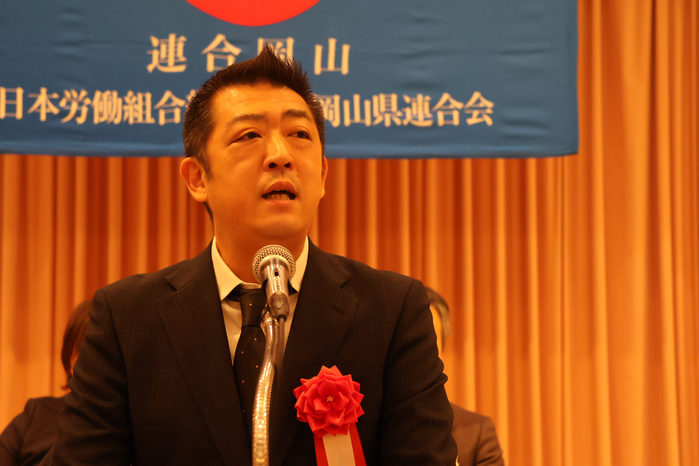 大会では、連合本部 林副事務局長、岡山県 笠原副知事をはじめ多くの来賓の皆様に駆けつけていただき激励と連帯の挨拶を賜りました。