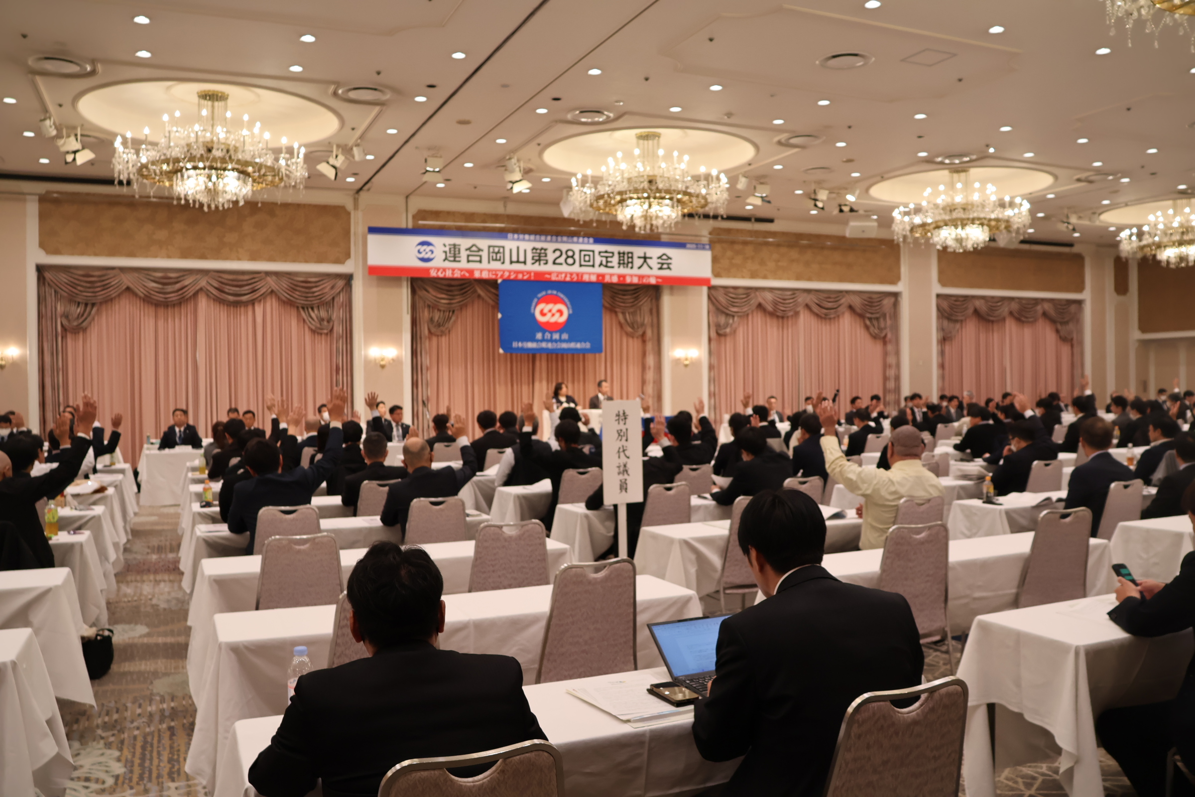 11月18日(火)、岡山プラザホテルにおいて各構成組織・加盟組合、地域協議会など約230名が出席し、連合岡山 第28回定期大会を開催し、2026-2027年度 運動方針など全6議案が全会一致で承認されました。