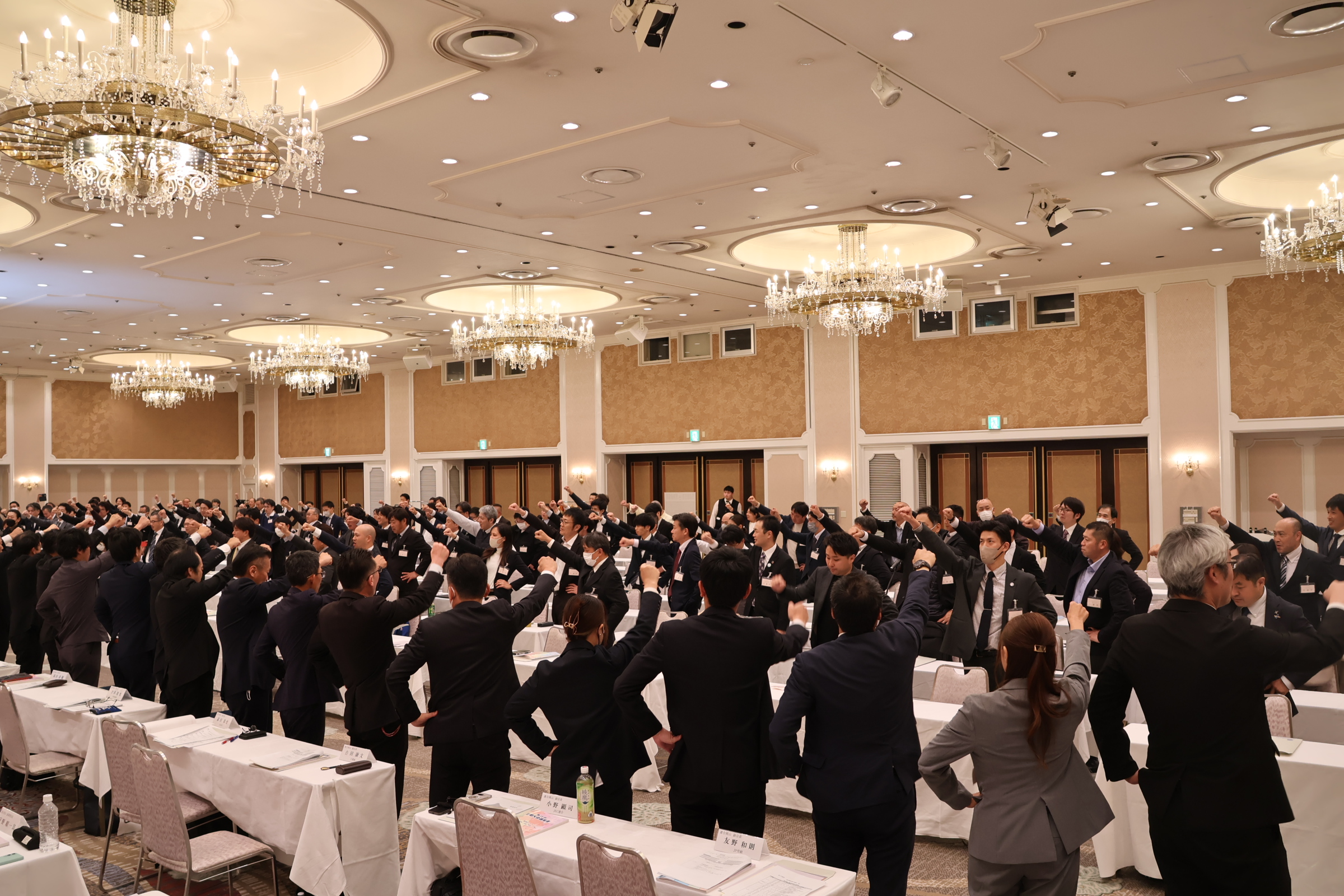 小橋会長を先頭に「働くことを軸とする安心社会」の実現に向け、組織一丸となって運動を進めていくことを誓い「ガンバロー三唱」で閉会しました。